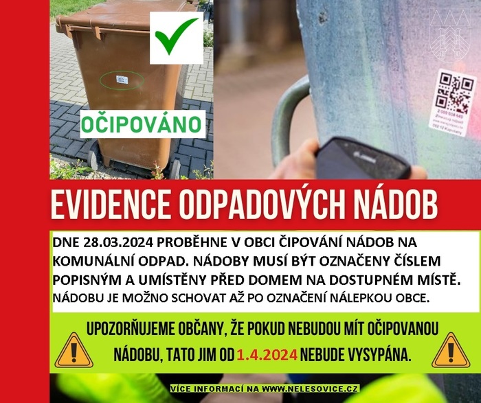 Úvod > Obec > Aktuality > POZOR !!!!! ČIPOVÁNÍ NÁDOB NA KOMUNÁLNÍ ODPAD DNE 28.03.2024